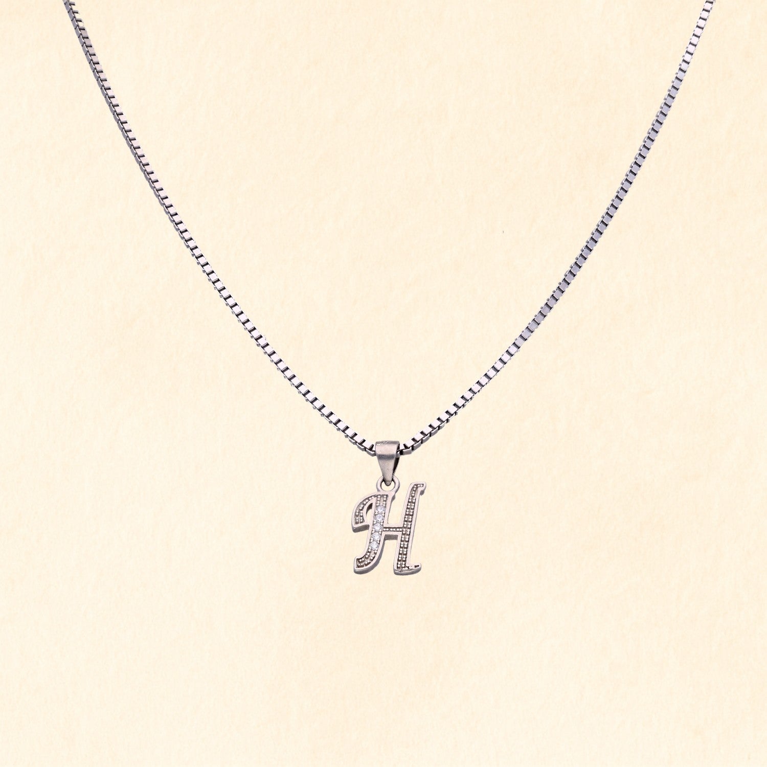 Stylish sterling silver men’s pendant chain with alphabet “H” initial design, perfect for a personalized and modern look.