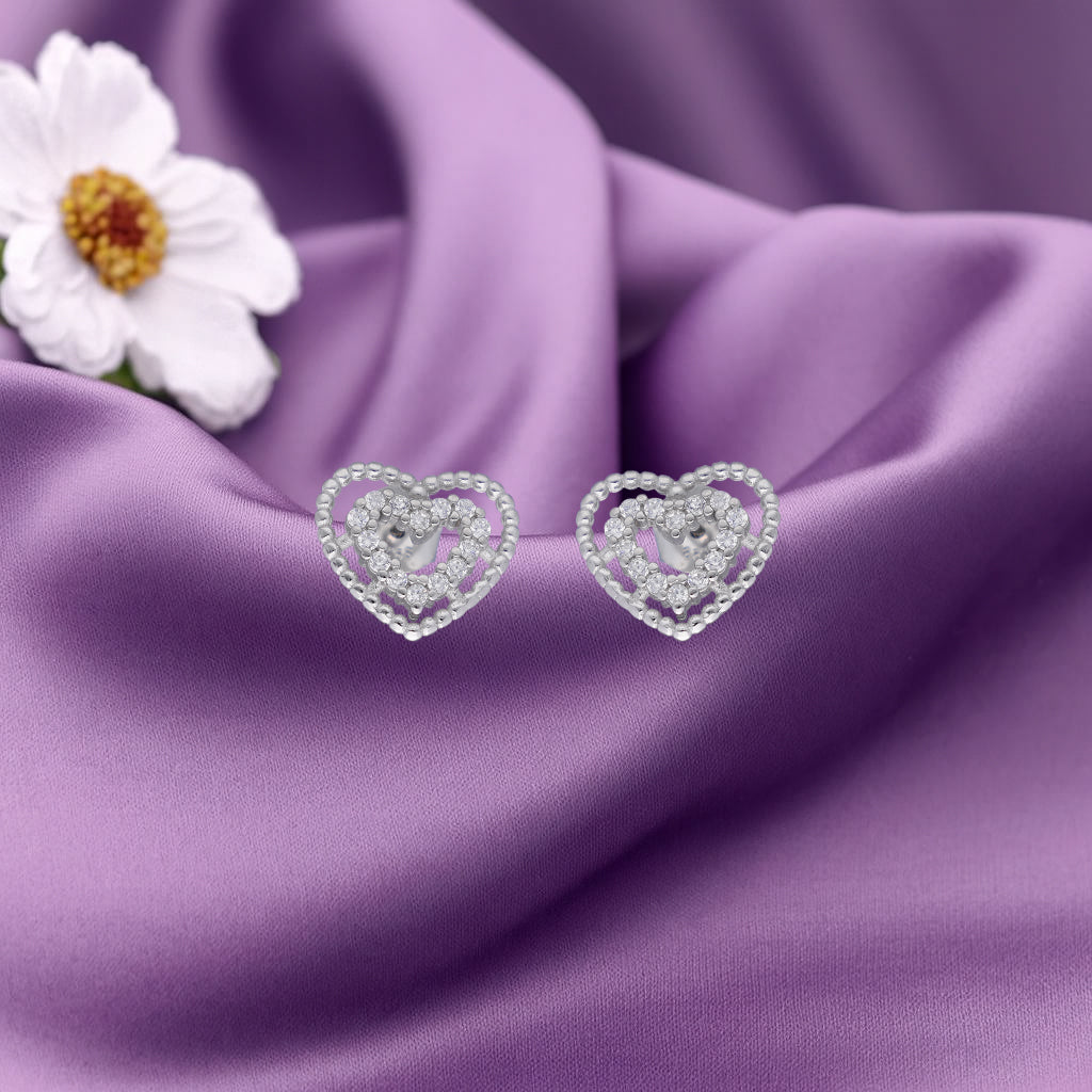 Elegant beaded heart-shaped studs accented with sparkling crystals.