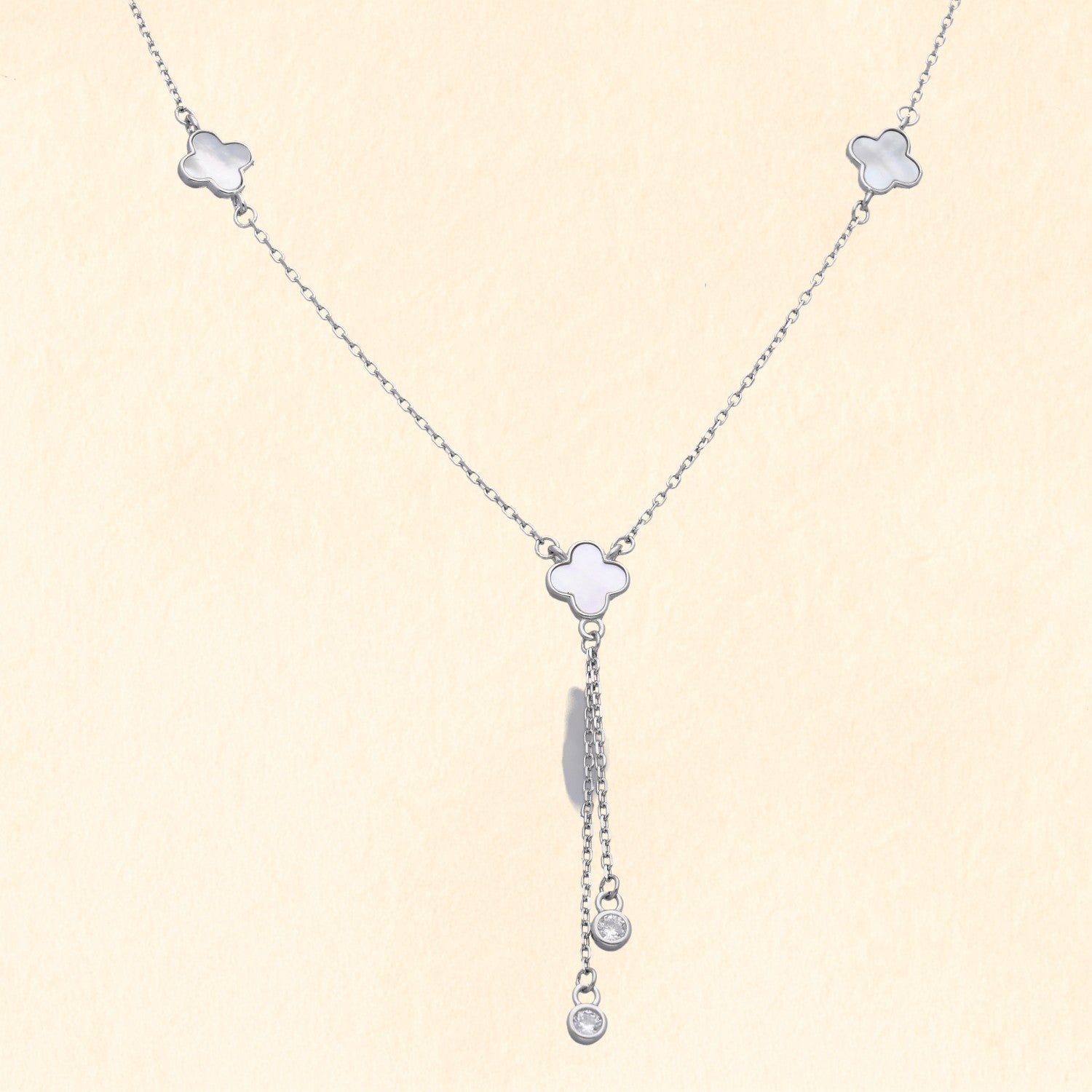 Elegant 92.5 silver necklace with delicate clover motifs and a drop chain design for a modern touch.