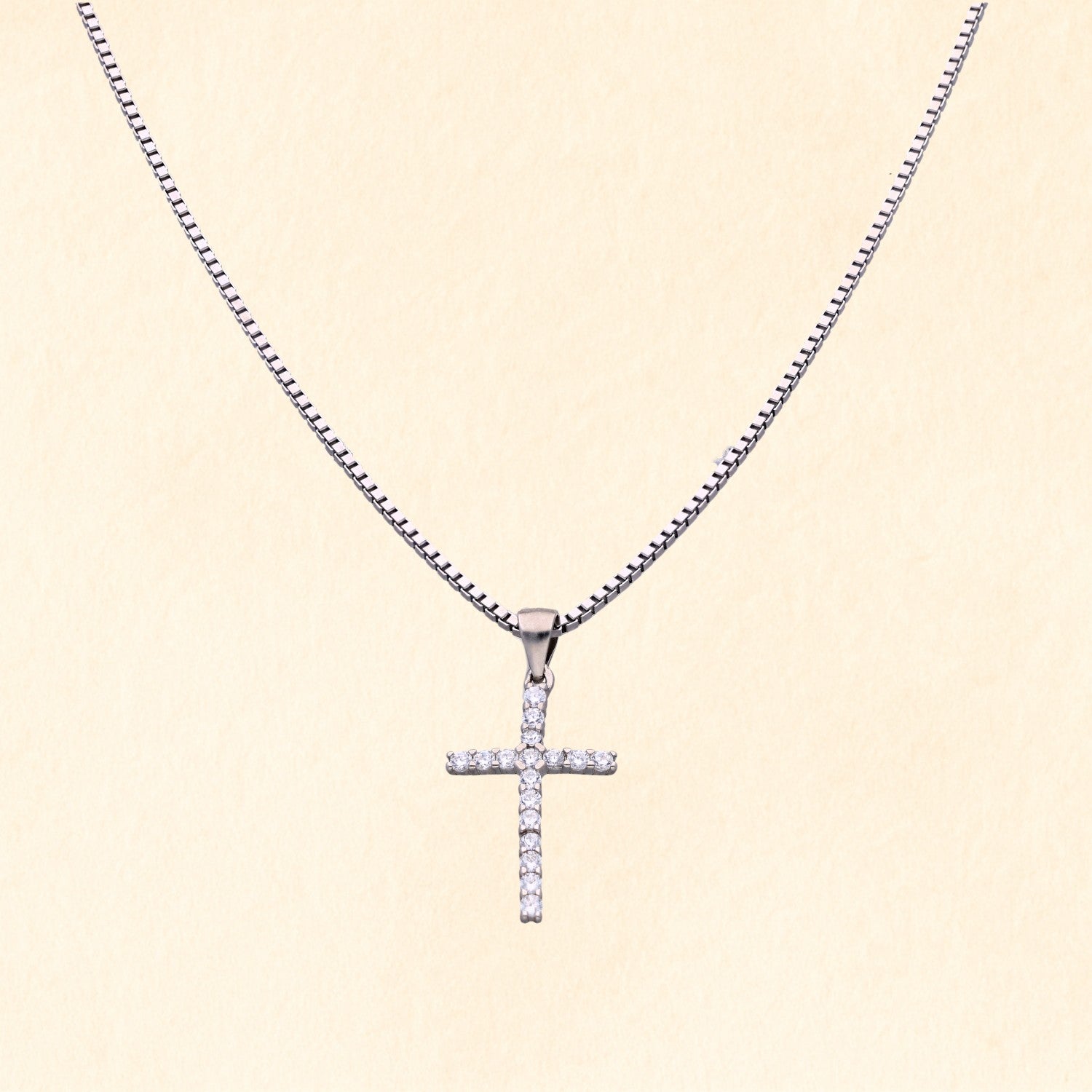 Stylish sterling silver men’s pendant chain featuring a sparkling cross design, blending faith and fashion for everyday wear.