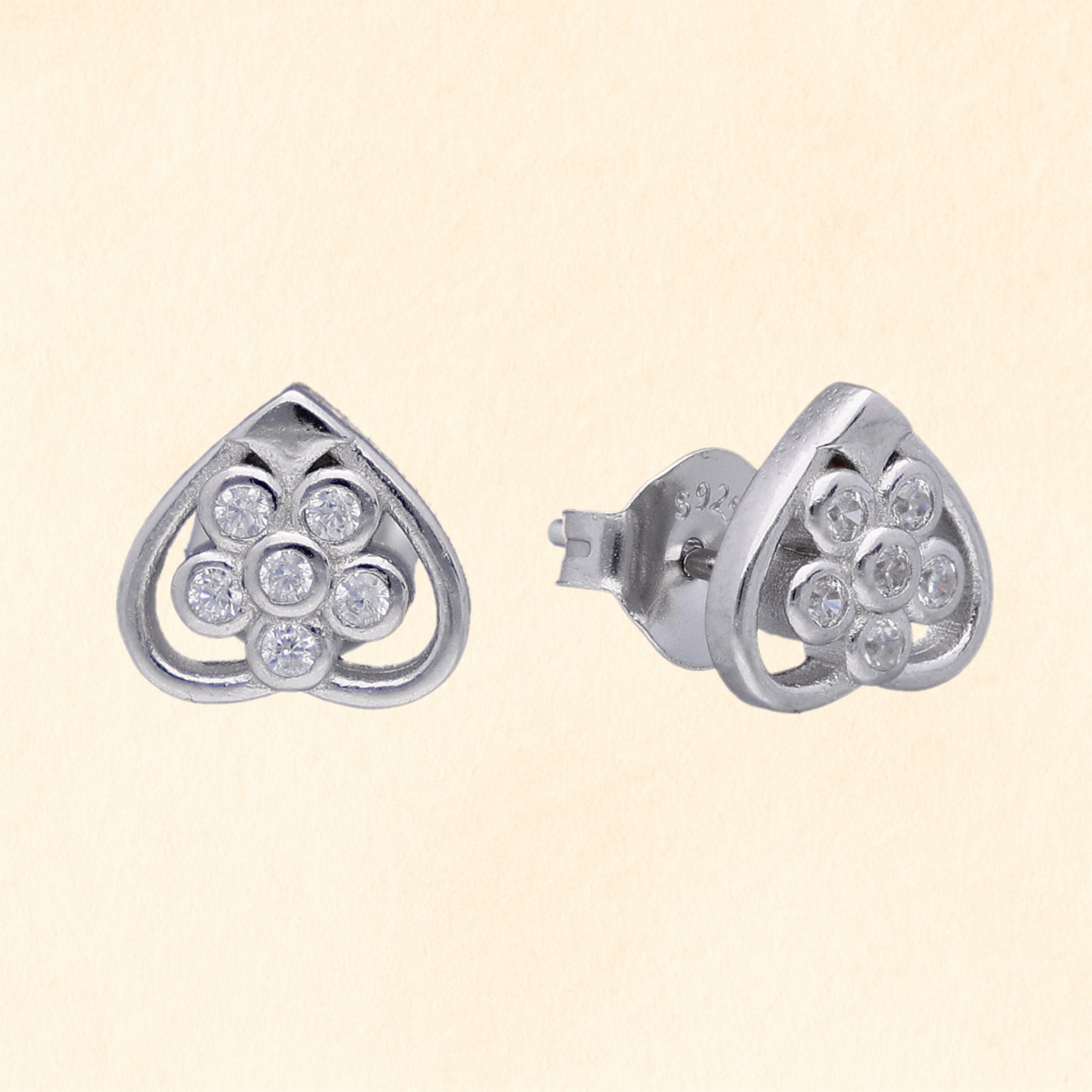 Elegant heart-shaped studs featuring a delicate crystal flower.