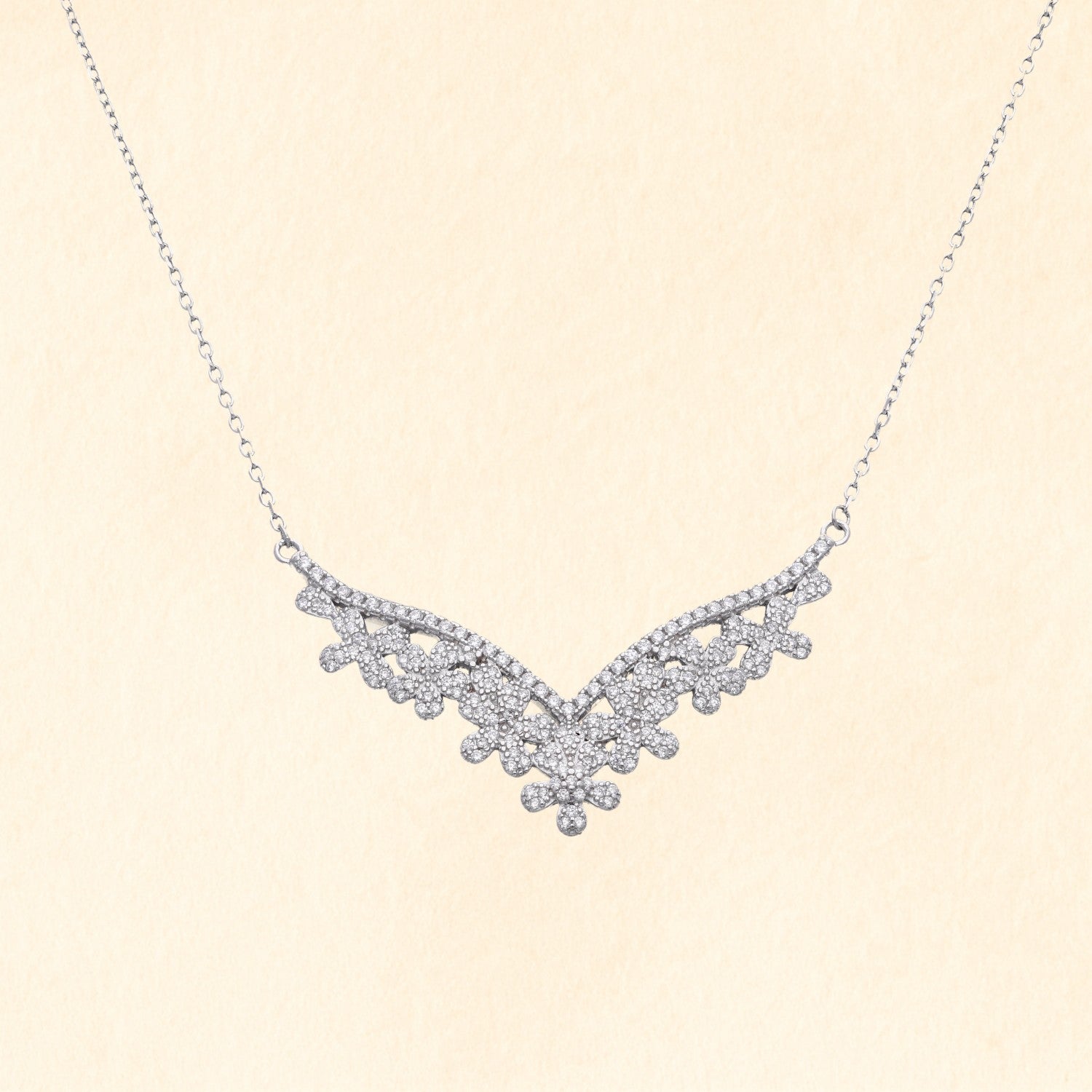 Beautiful 92.5 silver necklace with an intricate floral design, adorned with shimmering stones.