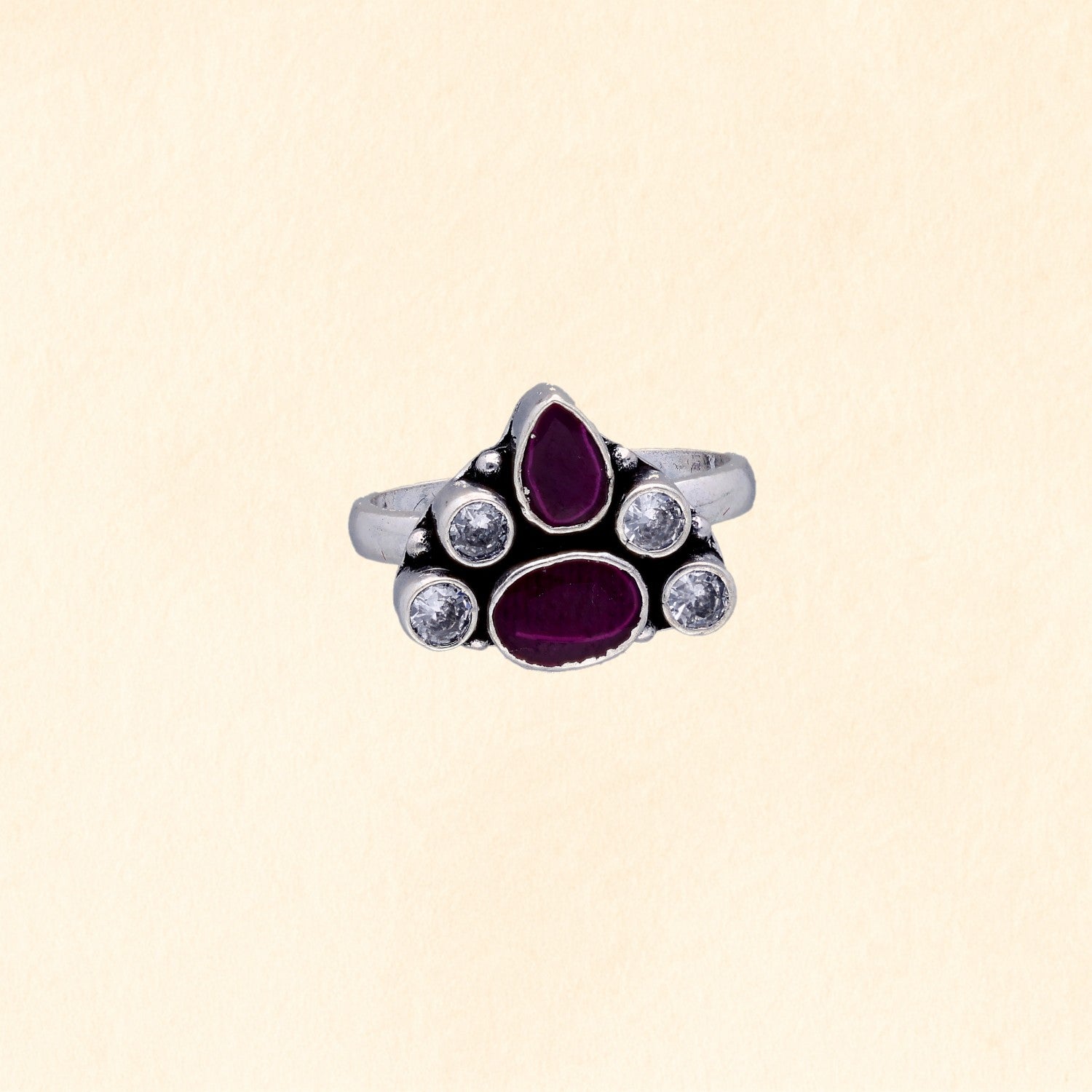 rafted in 92.5% sterling silver, this toe ring features vibrant ruby-red stones highlighted with sparkling white accents for a regal touch. Designed with an adjustable band for comfort, it comes as a set of 2 pieces. A perfect pick for festive wear, weddings, or adding a colourful charm to everyday outfits.