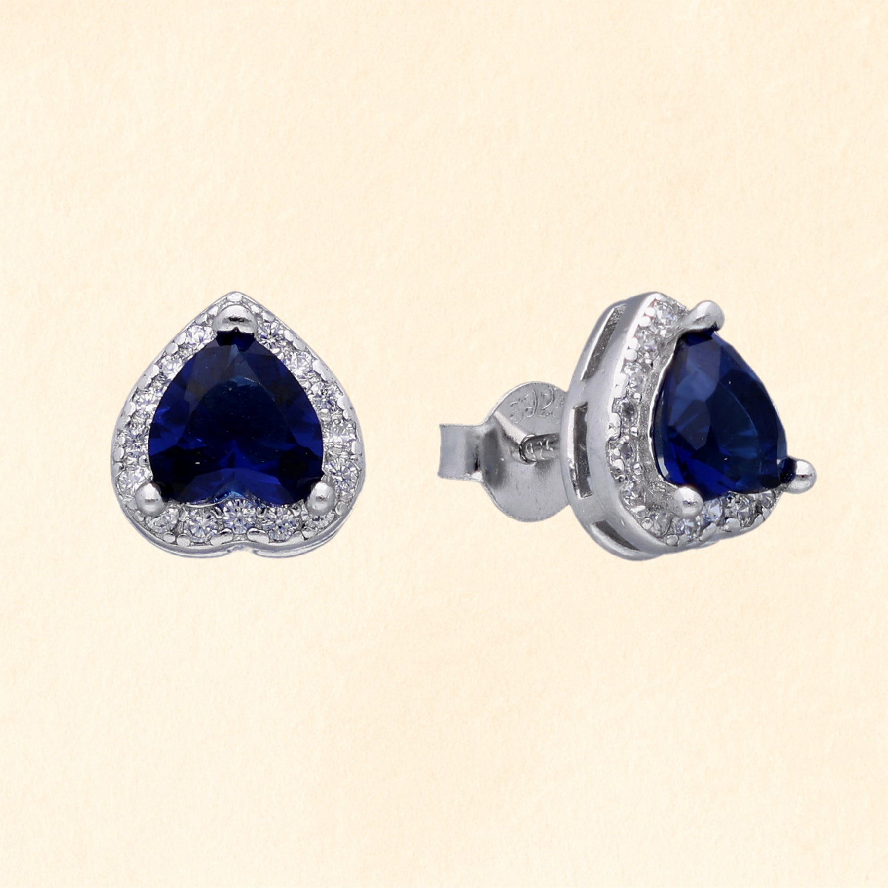 Elegant heart-shaped blue stones framed with sparkling crystals.