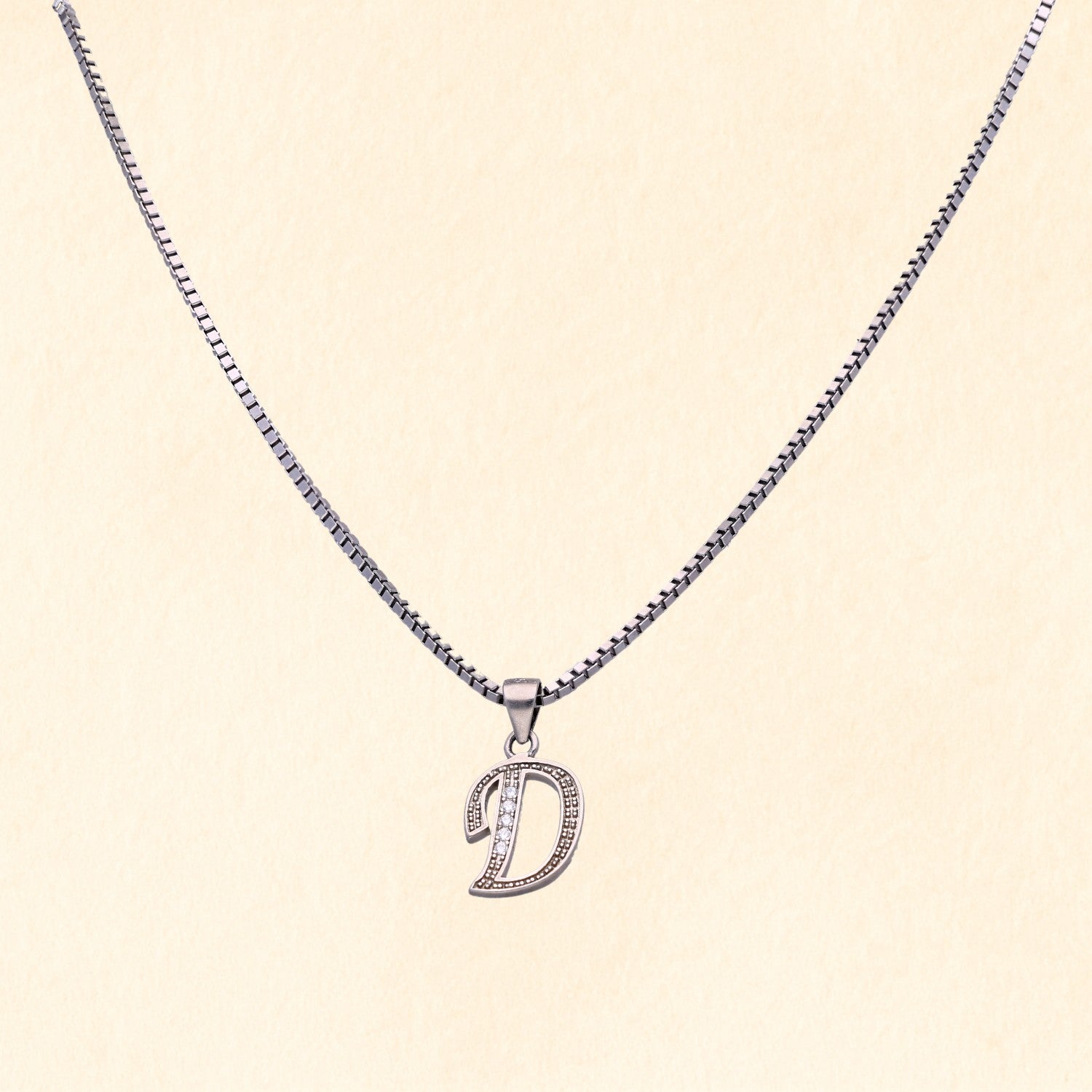Stylish sterling silver men’s pendant chain with alphabet “D” initial design, perfect for a personalized and modern look.
