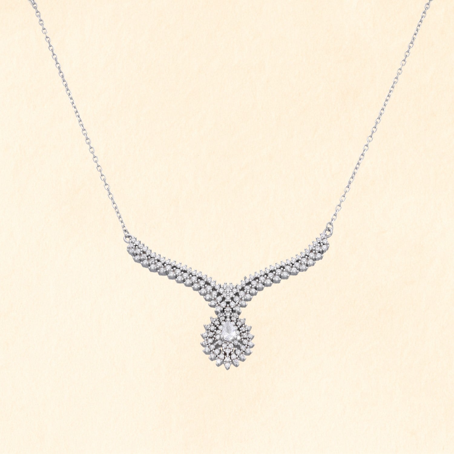 Elegant 92.5 silver necklace with a radiant diamond cluster pendant for timeless charm.